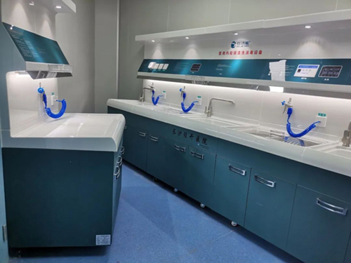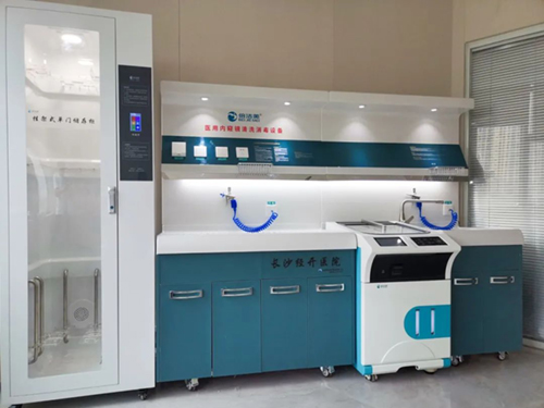 长沙经开医院5套内镜清洗工作站1套内镜自动清洗消毒设备及纯水系统、2台内镜储镜柜安装与调试完成