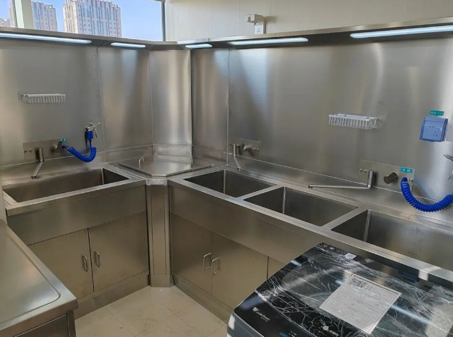首都医科大学附属朝阳医院不锈钢内镜清洗工作站安装调试完成