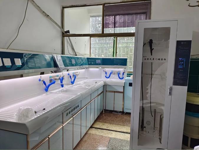湖南宜章县黄沙中心卫生院内镜清洗工作站、储镜柜安装调试完成