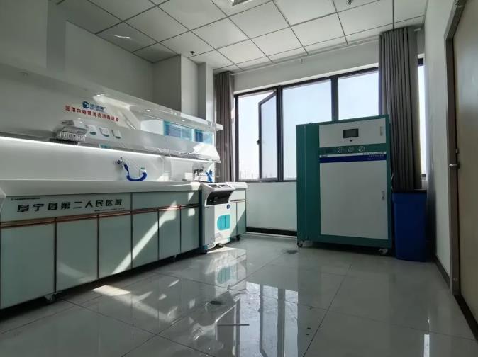 江苏阜宁县第二人民医院内镜清洗工作站、内镜自动清洗消毒机、纯水机安装调试完成