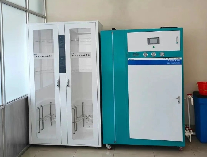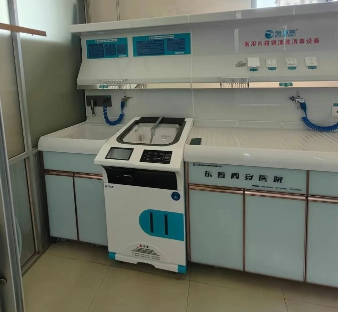 山东东营同安医院内镜清洗工作站、内镜自动清洗消毒机、纯水机、储镜柜安装调试完成