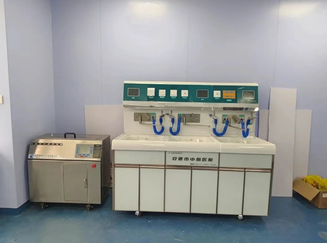 甘肃陇南西和县中医院内镜清洗工作站、内镜自动清洗消毒机、纯水机、储镜柜安装调试完成